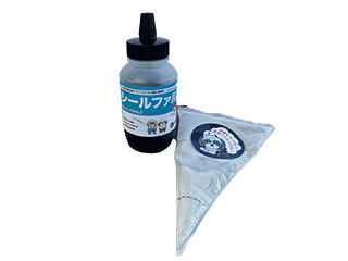シールファルトは常温のクラックシール材です。 ボトルの中に液体と三角袋にはいった粉をボトルの中でシェイクするだけで容易にクラックシール材ができます。あとはクラックに充填するだけのクラックシール材です。 5mm幅で深さにもよりますが、1本/400gあたり8m程度施工ができます。 臭いもほとんどなく、溶剤を使っておらず、水性のため環境に優しい商品になります。